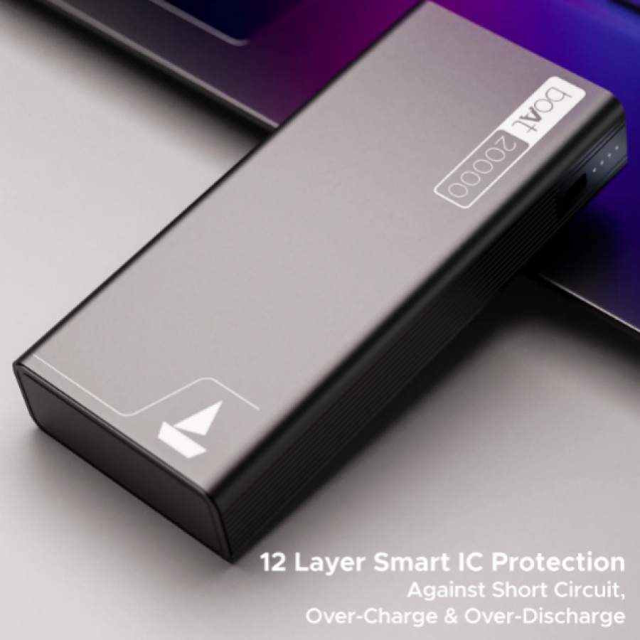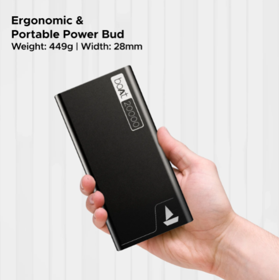 The BOAT EnergyShroom PB400 is a 10,000mAh power bank with fast charging and a sleek, portable design.