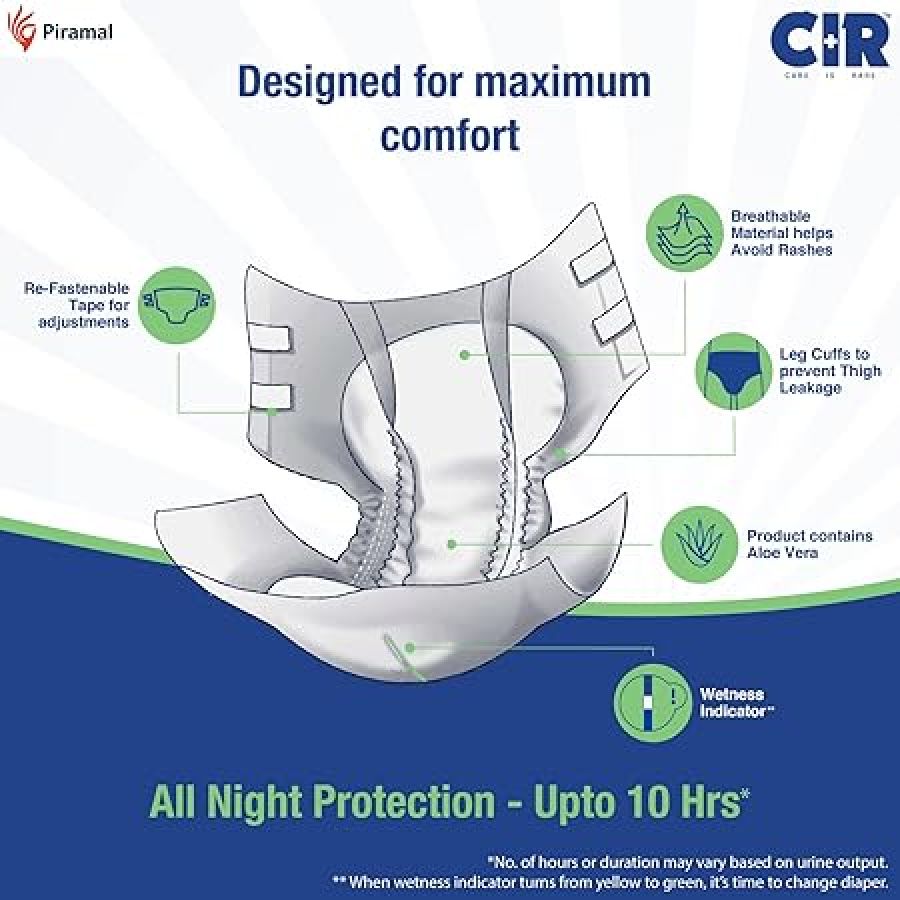 CIR Premium Adult Tape Diapers, Medium, 10-Pack – Aloe Vera, All-Night Protection