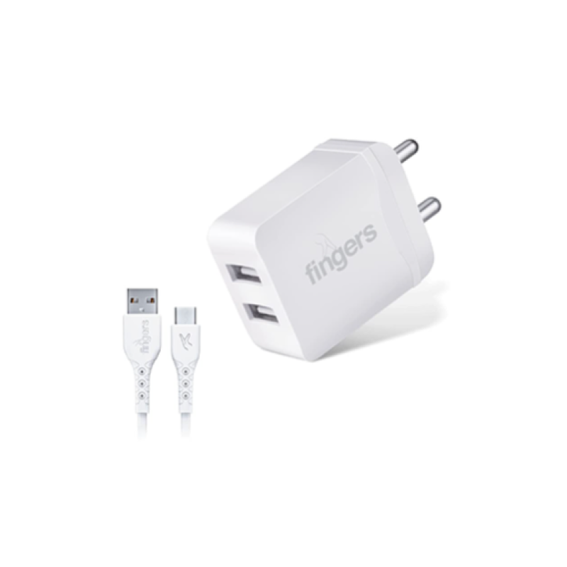 The FINGERS PA-DUAL USB Charger (5V/2.4A) in white offers fast, efficient charging for two devices simultaneously. Compact and reliable, it's perfect for everyday use on the go.