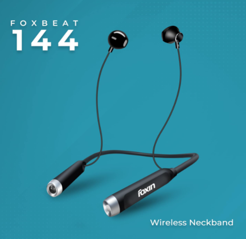 The FOXIN FOXBEAR 144 is a wireless neckband offering clear sound and up to 10 hours of playback. It features Bluetooth connectivity and a comfortable, secure fit for all-day wear.