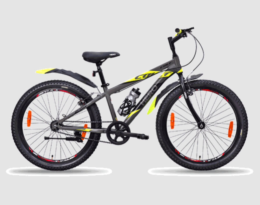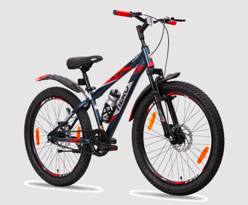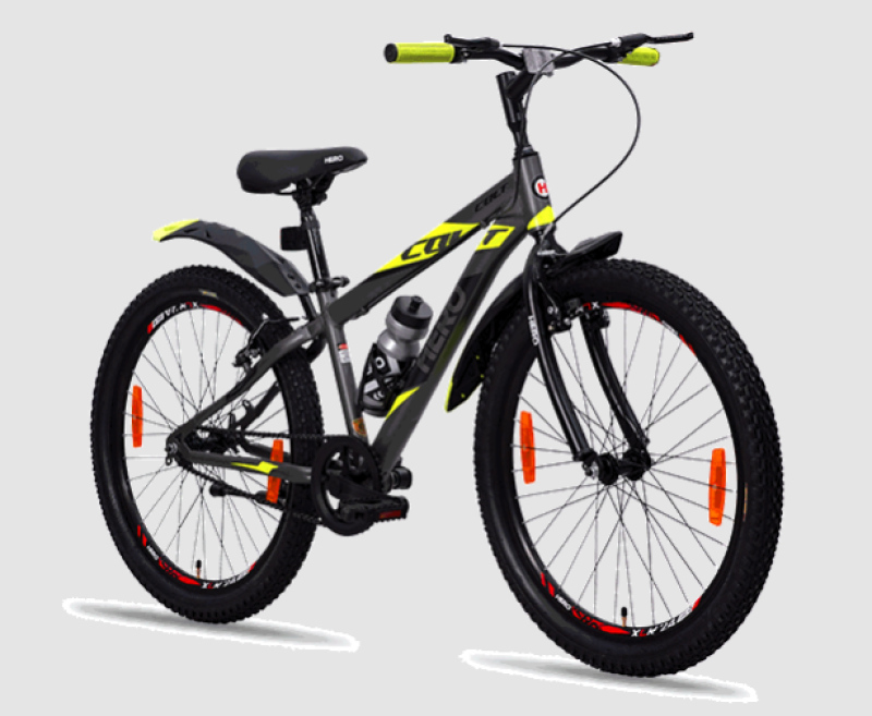 The Hero Colt Sports Bicycle combines a lightweight aluminum frame with front suspension for comfort, featuring single-speed setup and disc brakes in a stylish design, perfect for urban commuting and leisure rides.