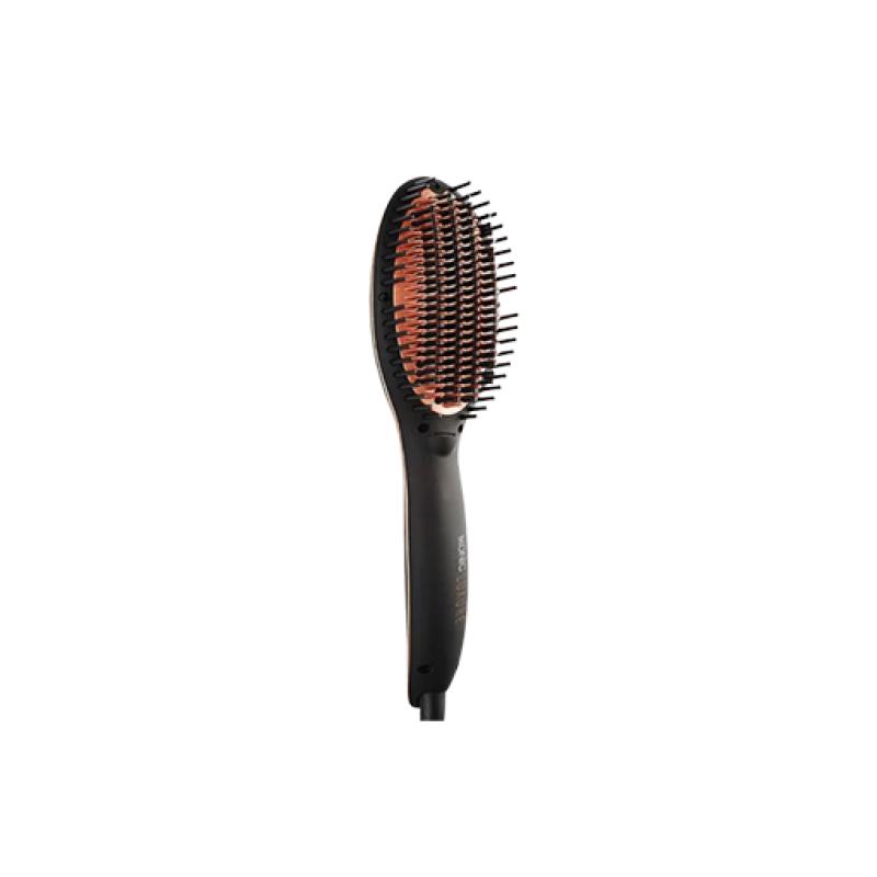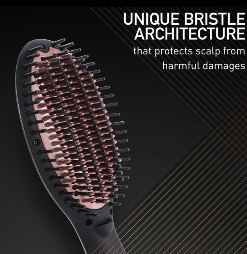 - Multi-tasking hair straightening brush with unique bristle architecture for effective frizz control.