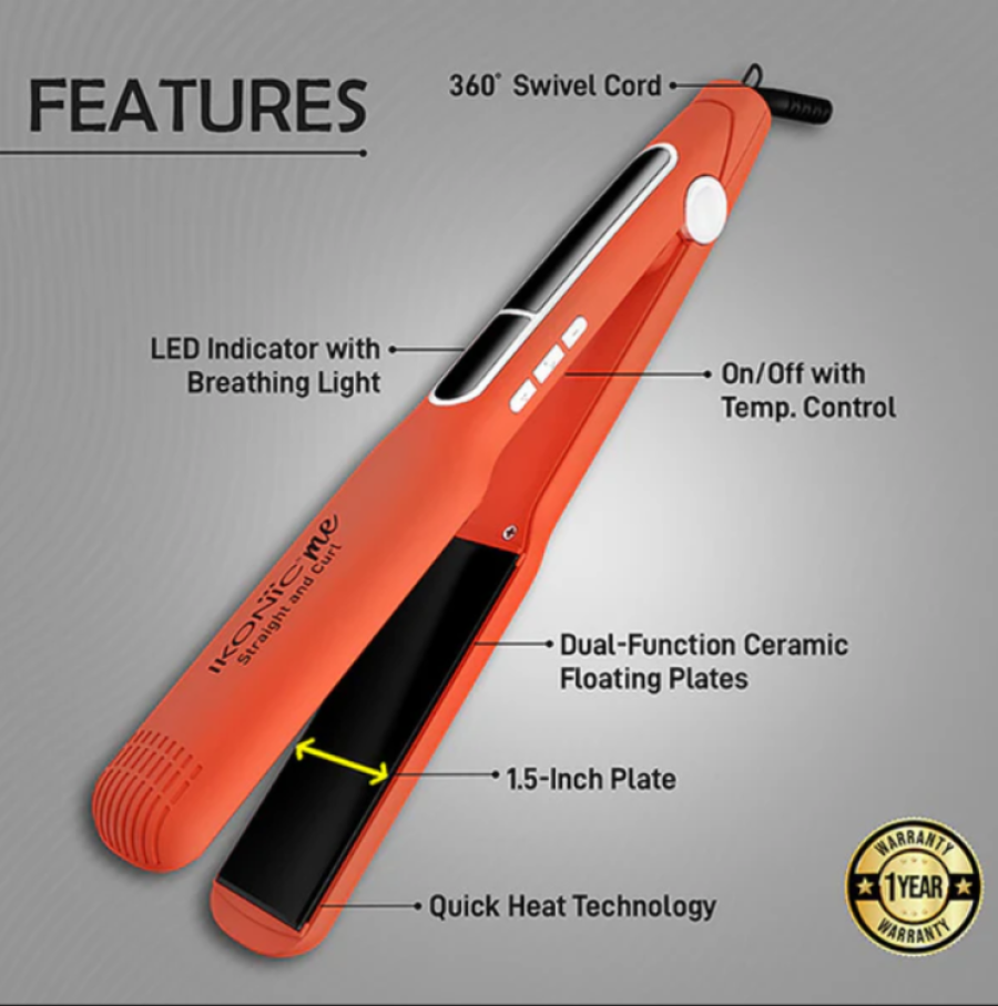 - 2-in-1 Straight & Curl Hair Straightener for versatile styling