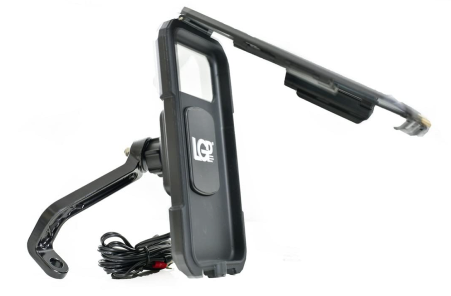 LGP Mobile Holder: Securely holds your phone, features a mirror fitting design, and includes an integrated charger for convenient use.