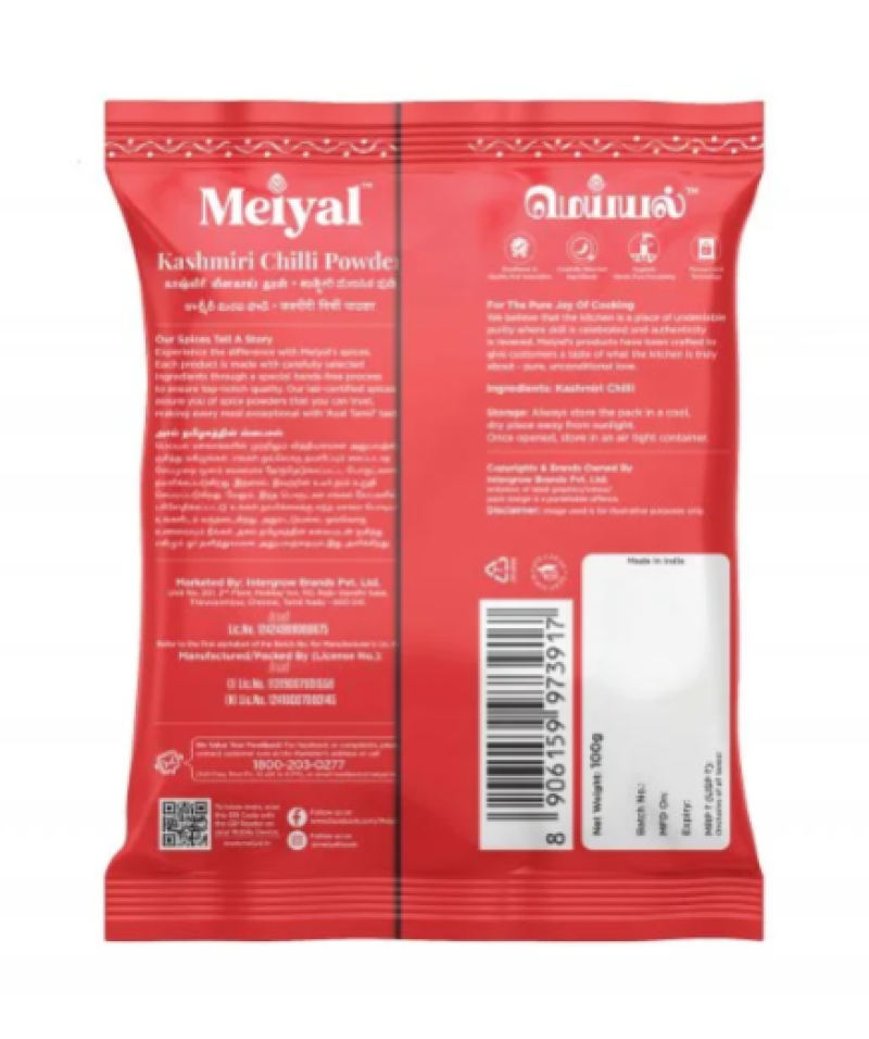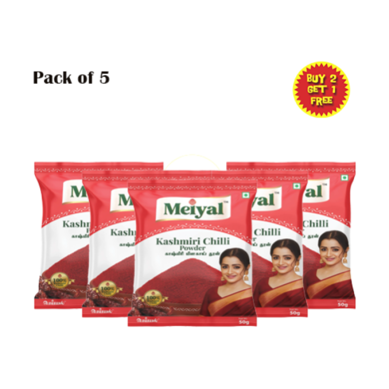 Elevate your dishes with Meiyal’s Kashmiri Chilli Powder, known for its vibrant red color and mild heat. Perfect for tandoori, curries, and marinades, it adds spice and visual appeal to every meal!