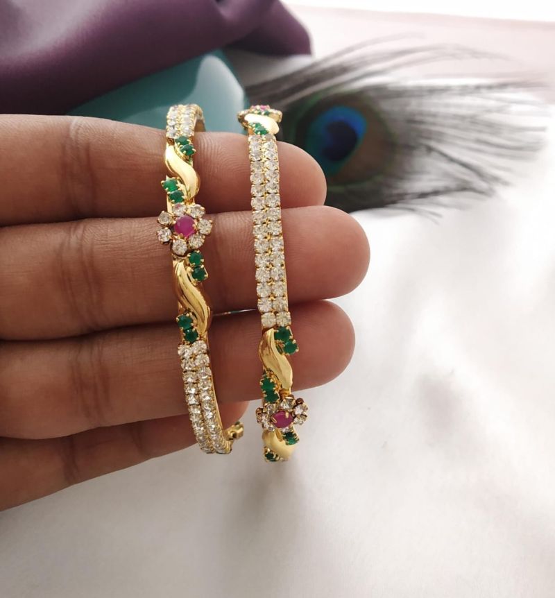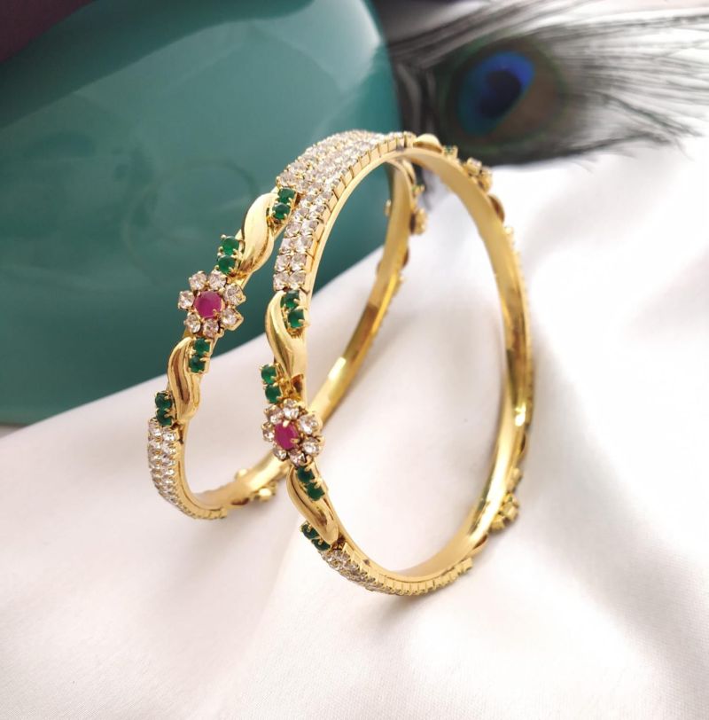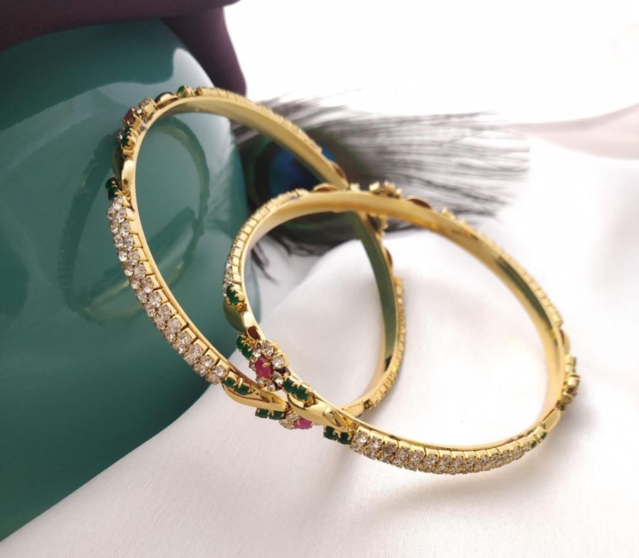 Discover the allure of intricately crafted gold-plated bangles, blending traditional and contemporary design elements in exquisite fashion.