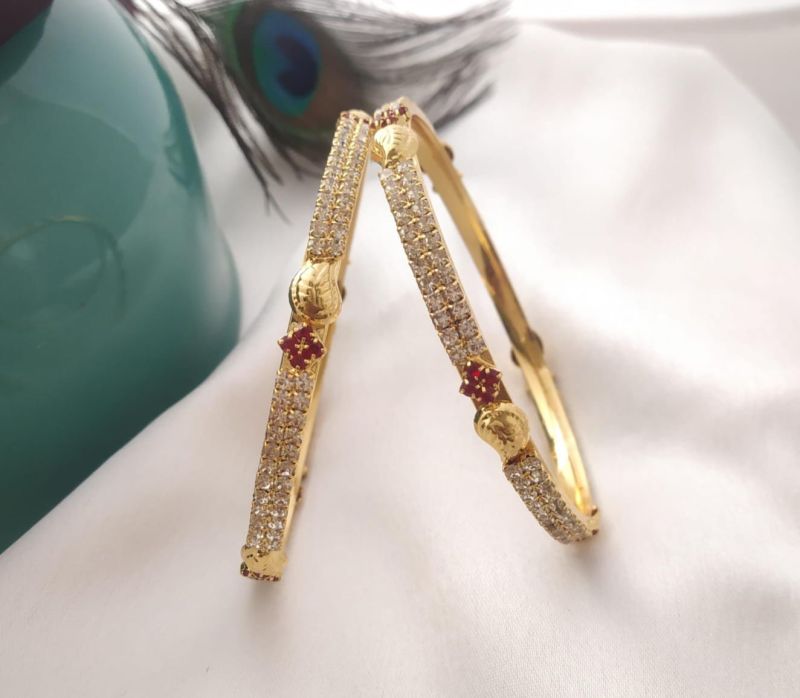 Intricately crafted gold-plated bangles blend traditional and contemporary design elements for a stunning aesthetic.