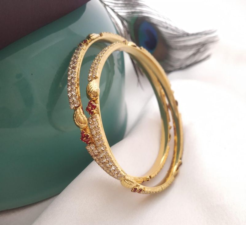 MJO FASHIONS Radiant Elegance: Gold-Plated Stone Bangles – Timeless Charm for Women and Girls