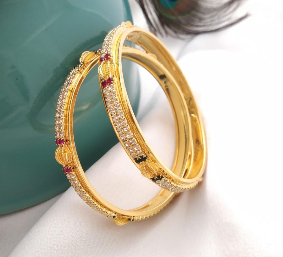 MJO FASHIONS Radiant Elegance: Gold-Plated Stone Bangles – Timeless Charm for Women and Girls MJB16