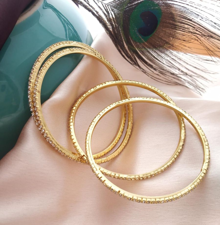 Intricately crafted gold-plated bangles blend traditional and contemporary design elements for a stunning aesthetic.