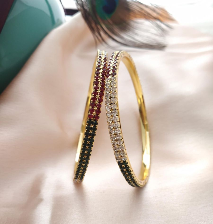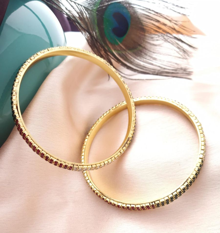 MJO FASHIONS Radiant Elegance: Gold-Plated Stone Bangles – Timeless Charm for Women and Girls MJB6
