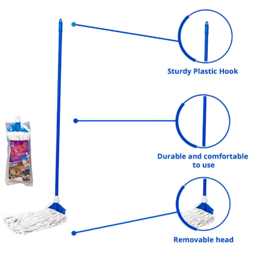 Monkey 555 Premium Clip Mop XL: Dual locking system Replaceable, special absorbent 100% cotton yarn 300 grams of yarn for excellent water retention 2s count 12 PLY bleached yarn Long-lasting, recyclable fiber Ideal for everyday use