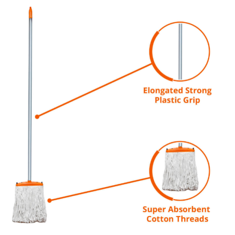 Unbreakable T-shaped mop head Super absorbent, bleached cotton threads Durable and comfortable to use Ideal for everyday cleaning
