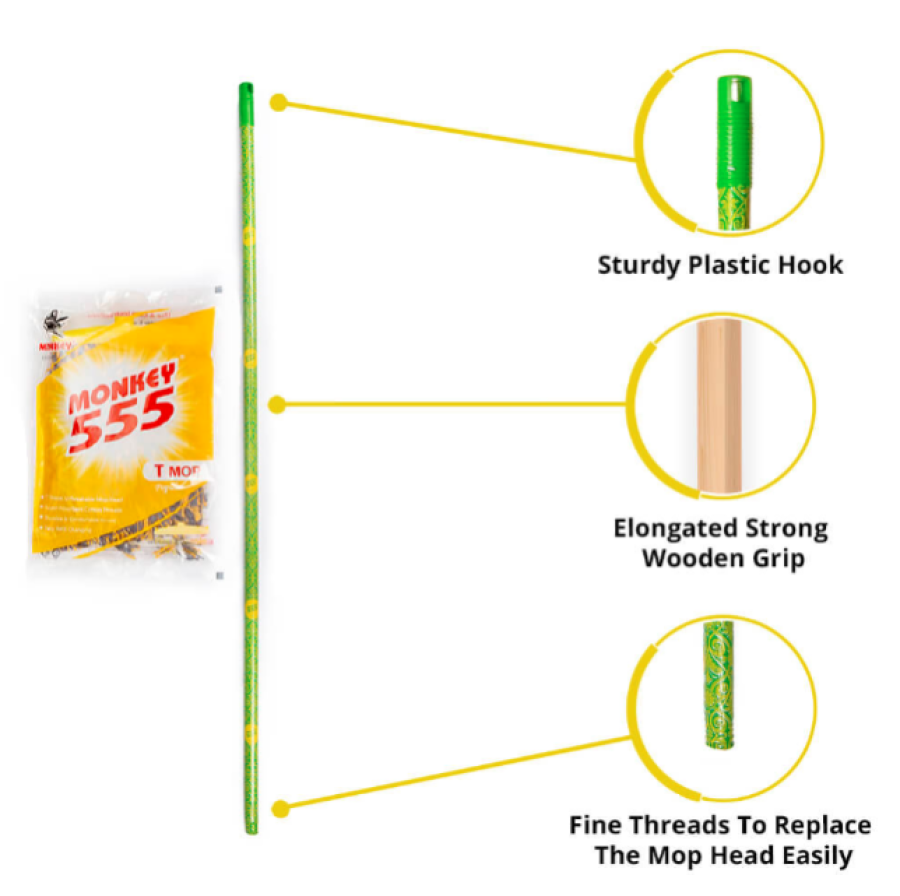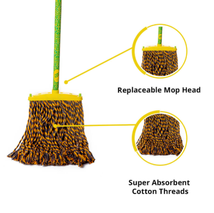 Super Absorbent Cotton Threads with Replaceable Mop Head, Elongated Strong Wooden Grip, and Sturdy Plastic Hook