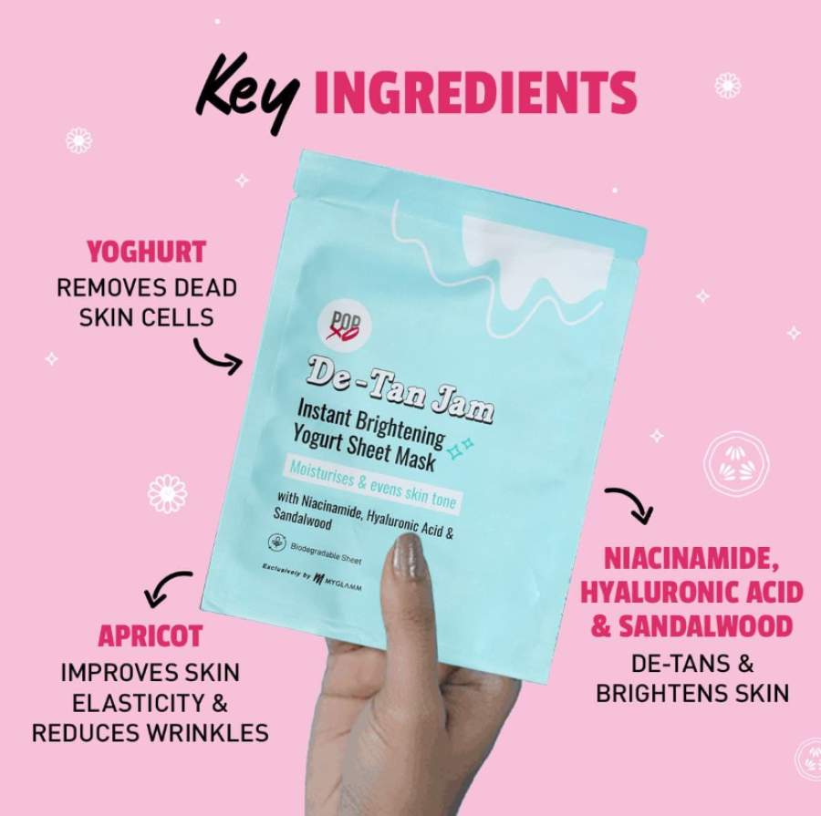 MyGlamm POPxo De-Tan Jam Brightening Yoghurt Sheet Mask with Niacinamide & Hyaluronic Acid