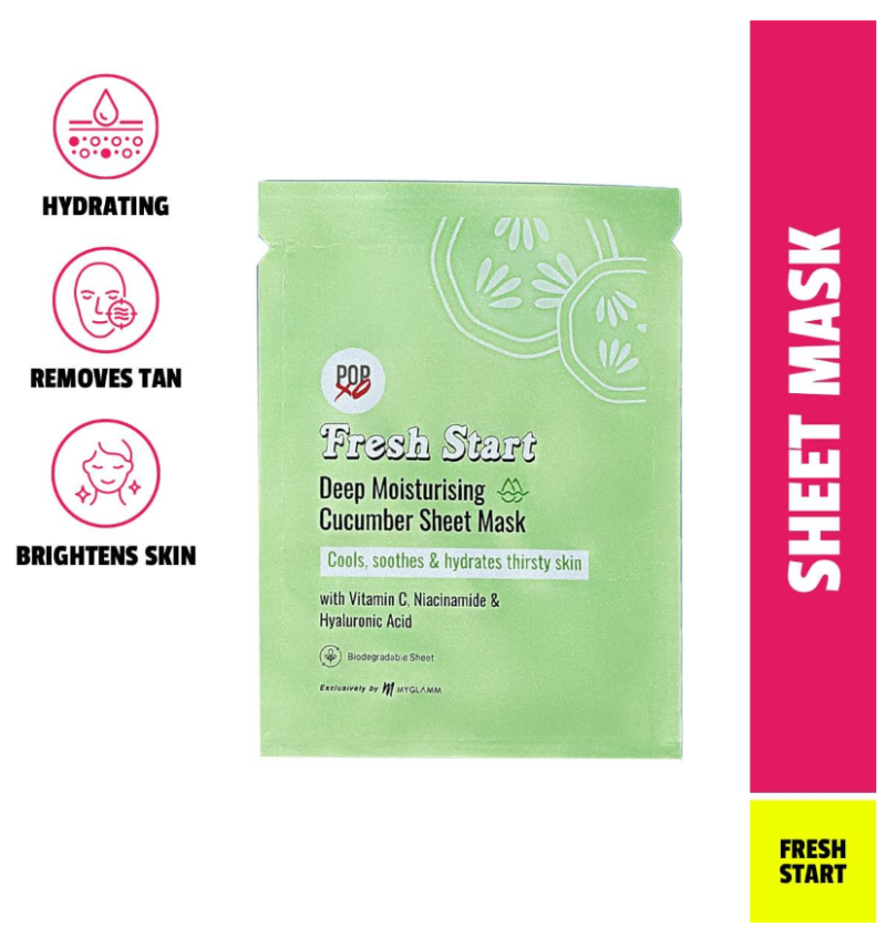 MyGlamm POPxo Fresh Start Cucumber Hydrating Sheet Mask with Hyaluronic Acid & Niacinamide