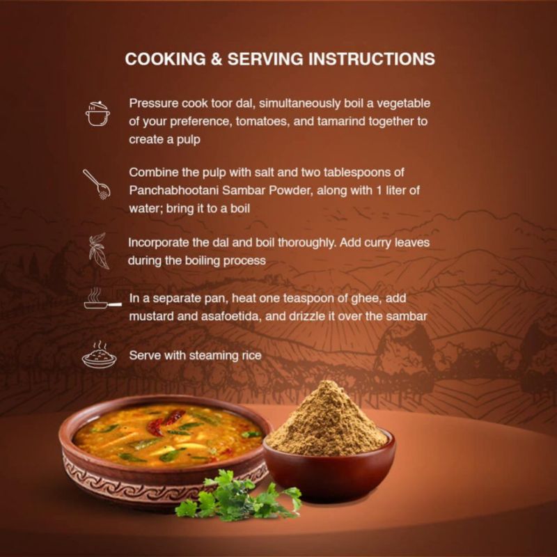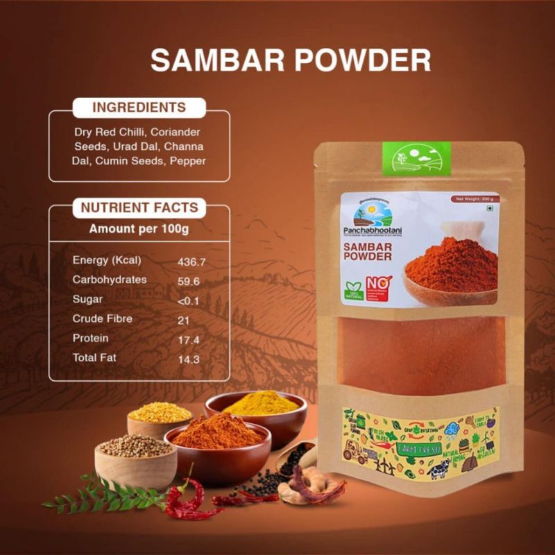 Panchabhootani Sambar Powder 200g / 500g:Authentic Flavor of South India, Aromatic Essence, Easy Digestion - Vegan, No Garlic, No Onion