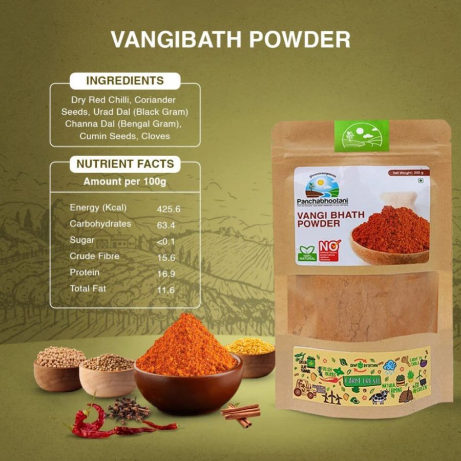 "Panchabhootani Vangi Bhath Powder, 200g / 500g: Authentic South Indian Flavor with Pure Natural Ingredients, Free from Preservatives"