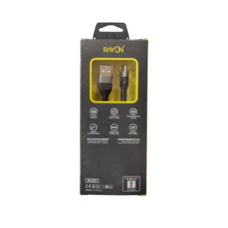 RAYON Data Cable RC02 - 1.2m, 18W, USB-B, Black Fast charging and data transfer with sturdy, tangle-free design. Ideal for USB-B devices, offering reliable performance.