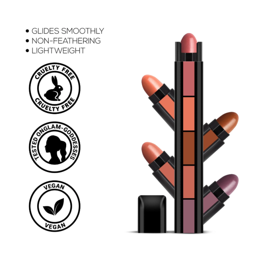 - Convenient 5-in-1 Design: No need for multiple lipsticks, all your essentials in one stick