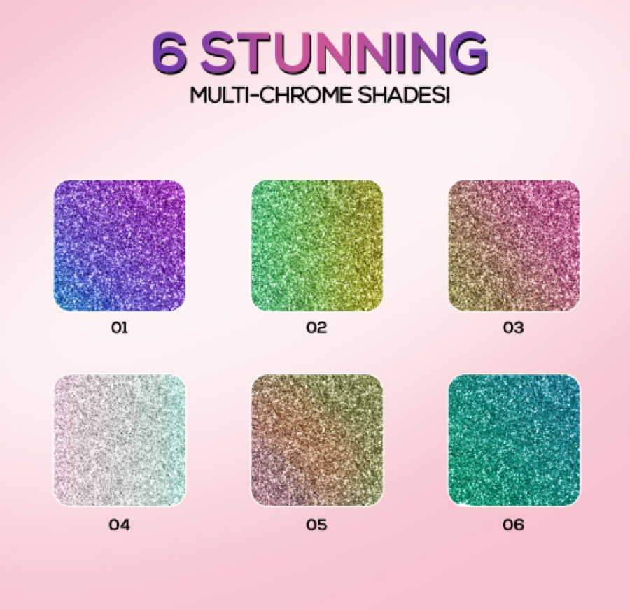 - Available in multiple shades for a holographic, multi-chrome effect