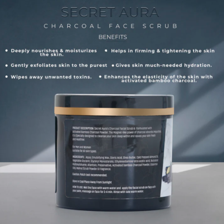 SECRET AURA CHARCOAL FACE SCRUB - 100GM