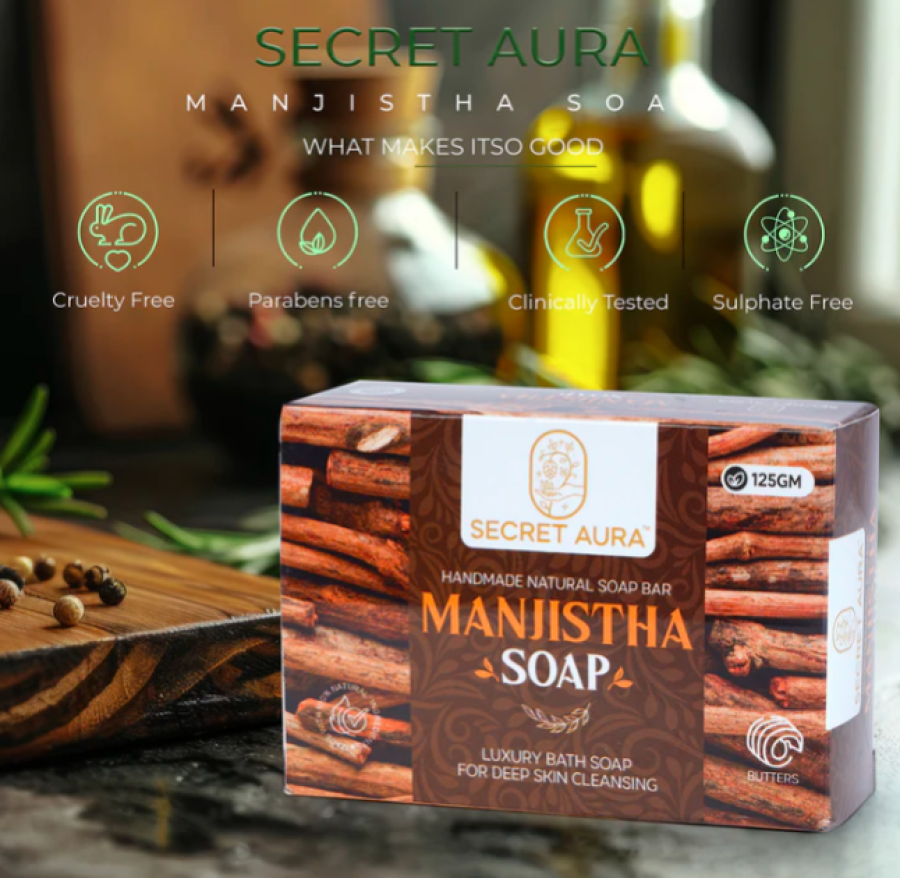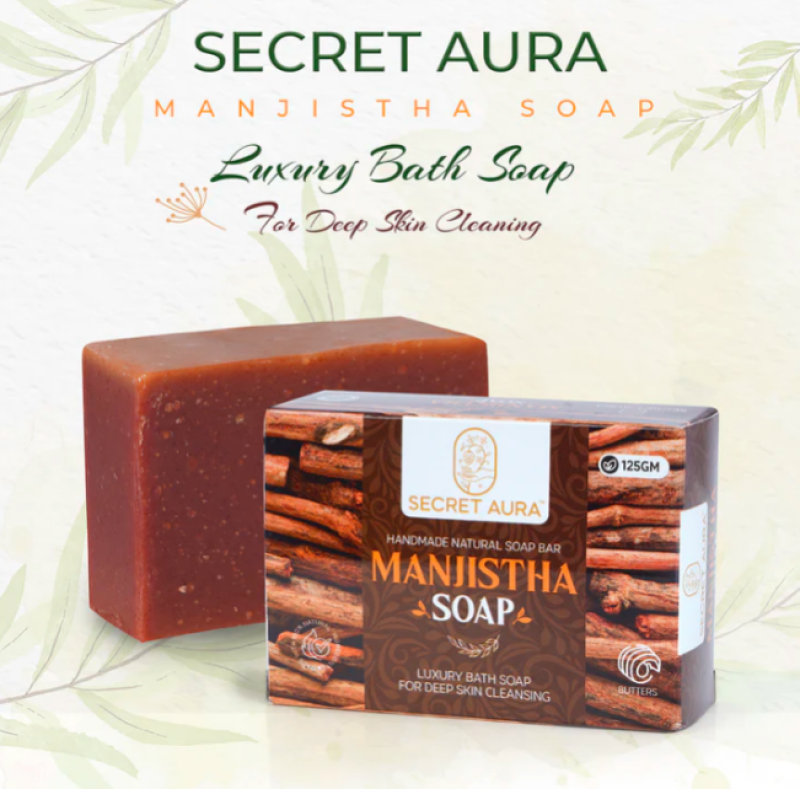 Manjistha Soap is a luxurious herbal cleanser infused with manjistha (Indian Madder) to detoxify, brighten, and promote radiant, even-toned skin. Ideal for all skin types, especially sensitive and blemish-prone skin.