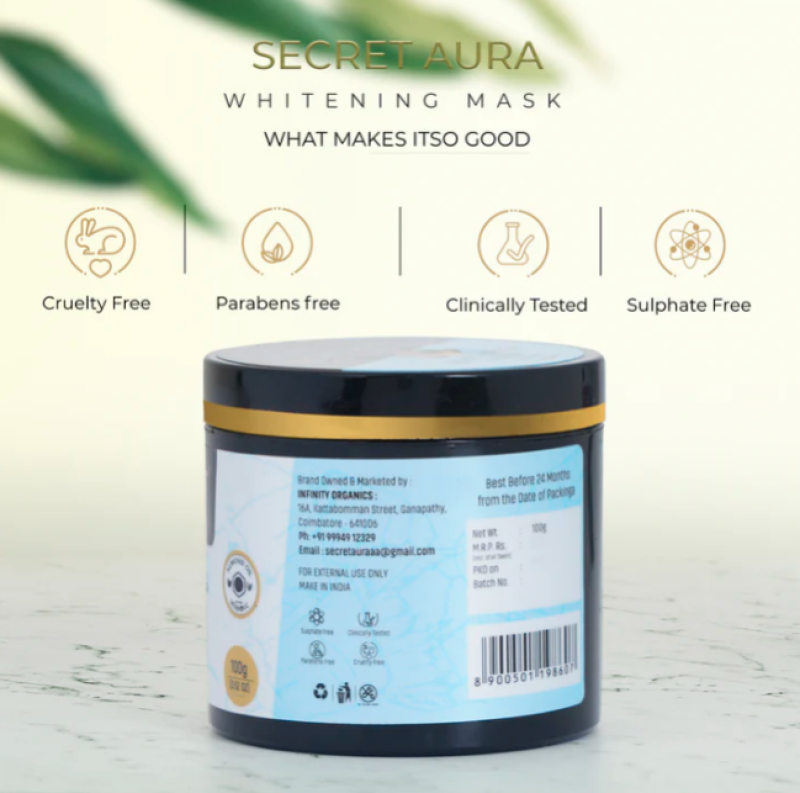 Whitening Mask brightens and evens skin tone while deeply nourishing and hydrating. It reduces dark spots and pigmentation, leaving skin radiant and glowing.