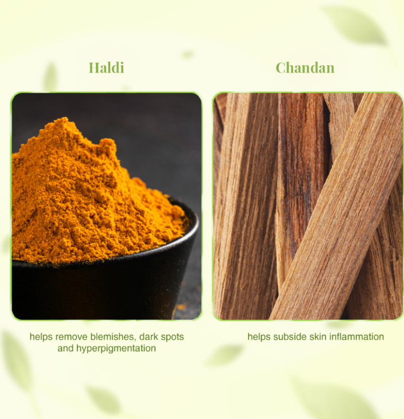 - Enriched with turmeric and sandalwood for natural glow and even tone.